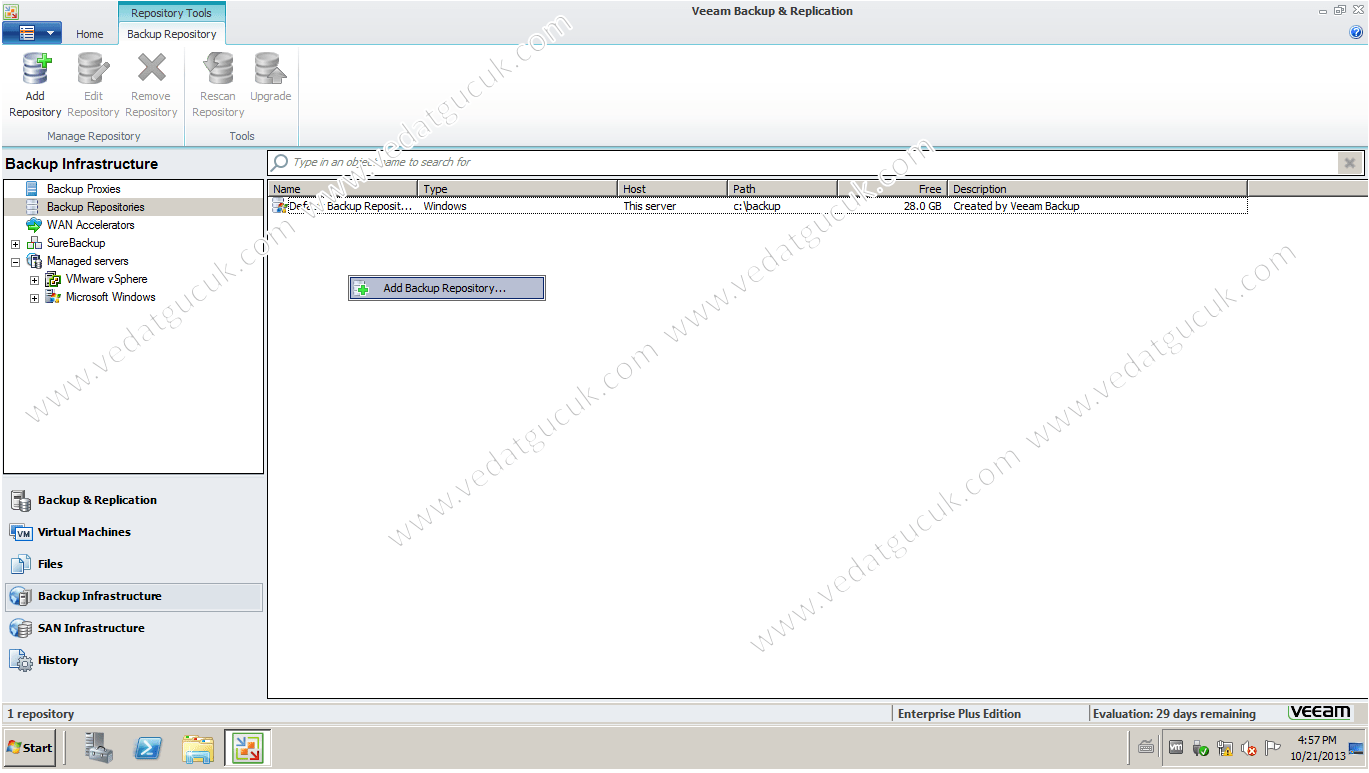 Backup Infrastructure kısmına geliyoruz buradan Backup Repositories kısmına geliyoruz.